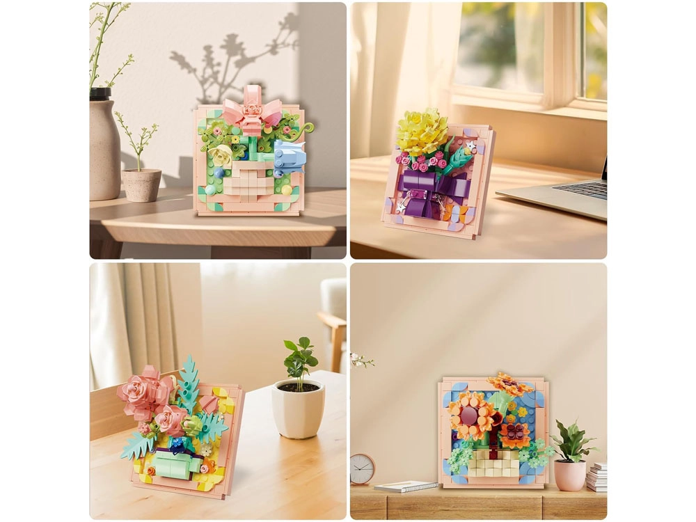 Konstrukcijski komplet iz kolekcije »Pomladni odklop: Rože v okvirju« bo navdušil otroke in odrasle, ki imajo radi ustvarjanje in stilne dodatke za interier. Iz posameznih delov boste sestavili realistične rože v okvirju – nastane elegantna 3D dekoracija, ki poživi dnevno sobo, otroško sobo ali delovno mizo.