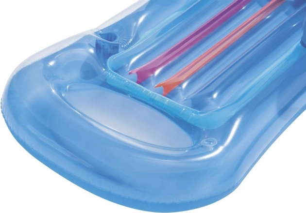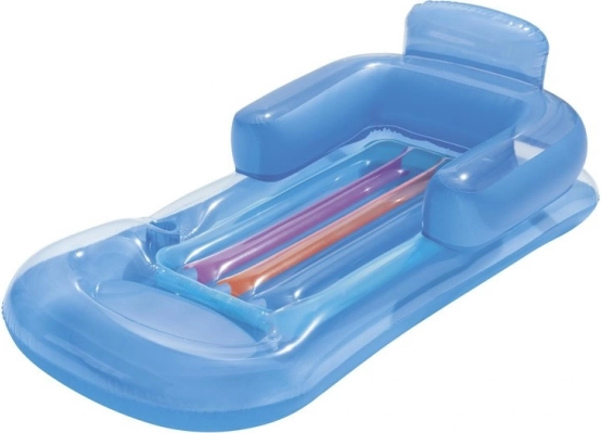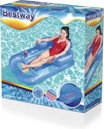 To stilsko modro ležalo združuje udobje in stabilnost. Dvignjeni nasloni za roke ter ergonomski naslon za hrbet in glavo držijo telo v udobnem položaju, medtem ko več zračnih komor zagotavlja dobro vzgonsko stabilnost. Integrirano držalo za pijačo vam omogoča uživanje priljubljene pijače brez izstopanja iz vode.