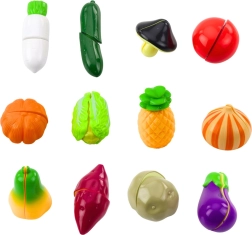 Igralni komplet za rezanje zelenjave je idealen za male kuharje, ki radi posnemajo odrasle. Vsak kos je sestavljen iz dveh polov, povezanih z ježkom, zato lahko otroci varno “režejo” in znova spajajo vedno znova. Trdna, kakovostna plastična izdelava in pisan dizajn vabita k ustvarjalni igri.