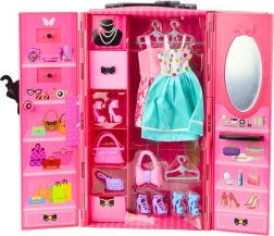 Ta bogato opremljen set vključuje punčko višine 30 cm in rožnato garderobno omaro z odpirajočimi se vrati, ogledalom in odlagalnimi poličkami. Zahvaljujoč pestri izbiri oblačil in dodatkov je punčko enostavno pripraviti za vsako priložnost – od sprehoda do elegantnega večernega dogodka.