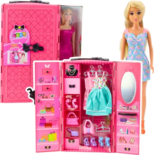 Stajliš punčka z rožnato garderobno omaro prinaša ure ustvarjalne zabave. Otroci lahko punčko oblečejo, kombinirajo obleke, čevlje in torbice ter ustvarjajo svoje modne stilizacije. Omara ima odpirajoča se vratca, znotraj pa ogledalo in poličke za pregledno shranjevanje dodatkov. Odlično darilo za razvoj kreativnosti in estetskega čuta.