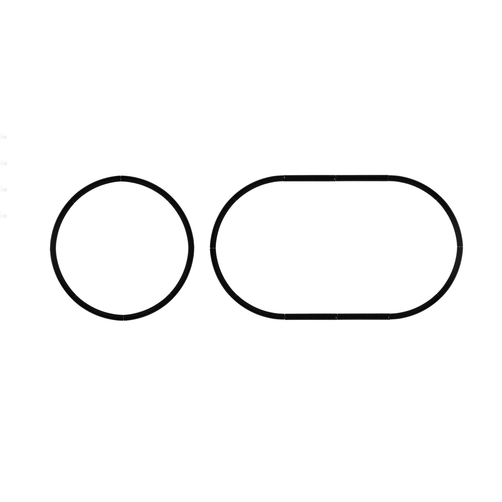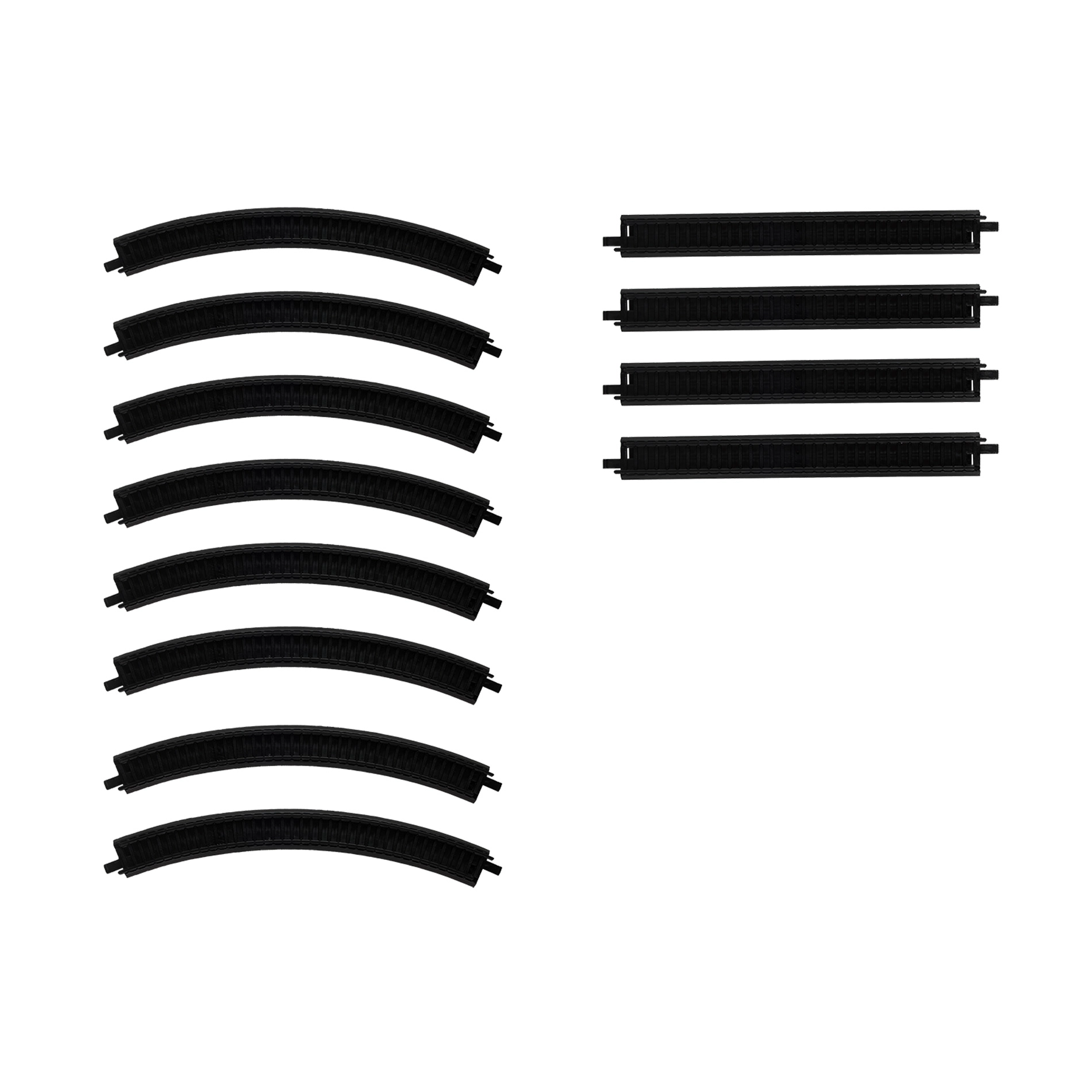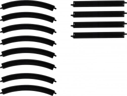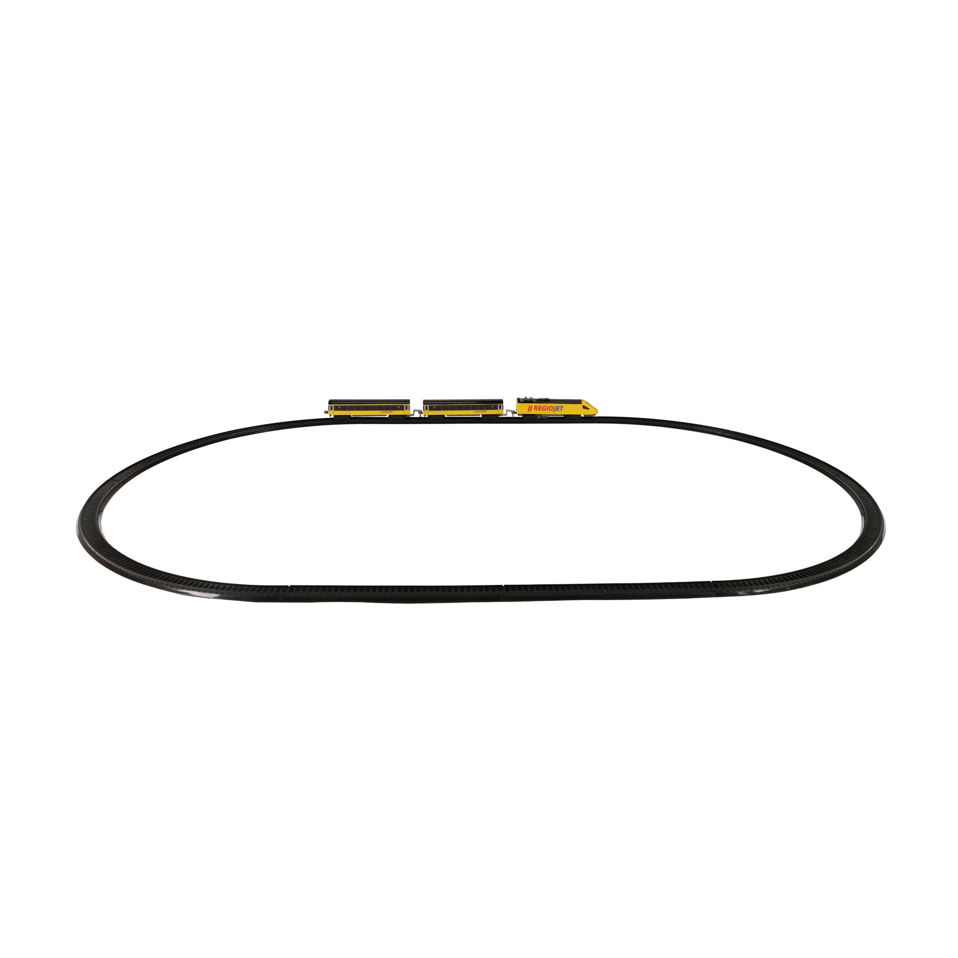 Set vsebuje ukrivljene in ravne tire, iz katerih sestavite zaprt krog za neprekinjeno vožnjo vlaka.