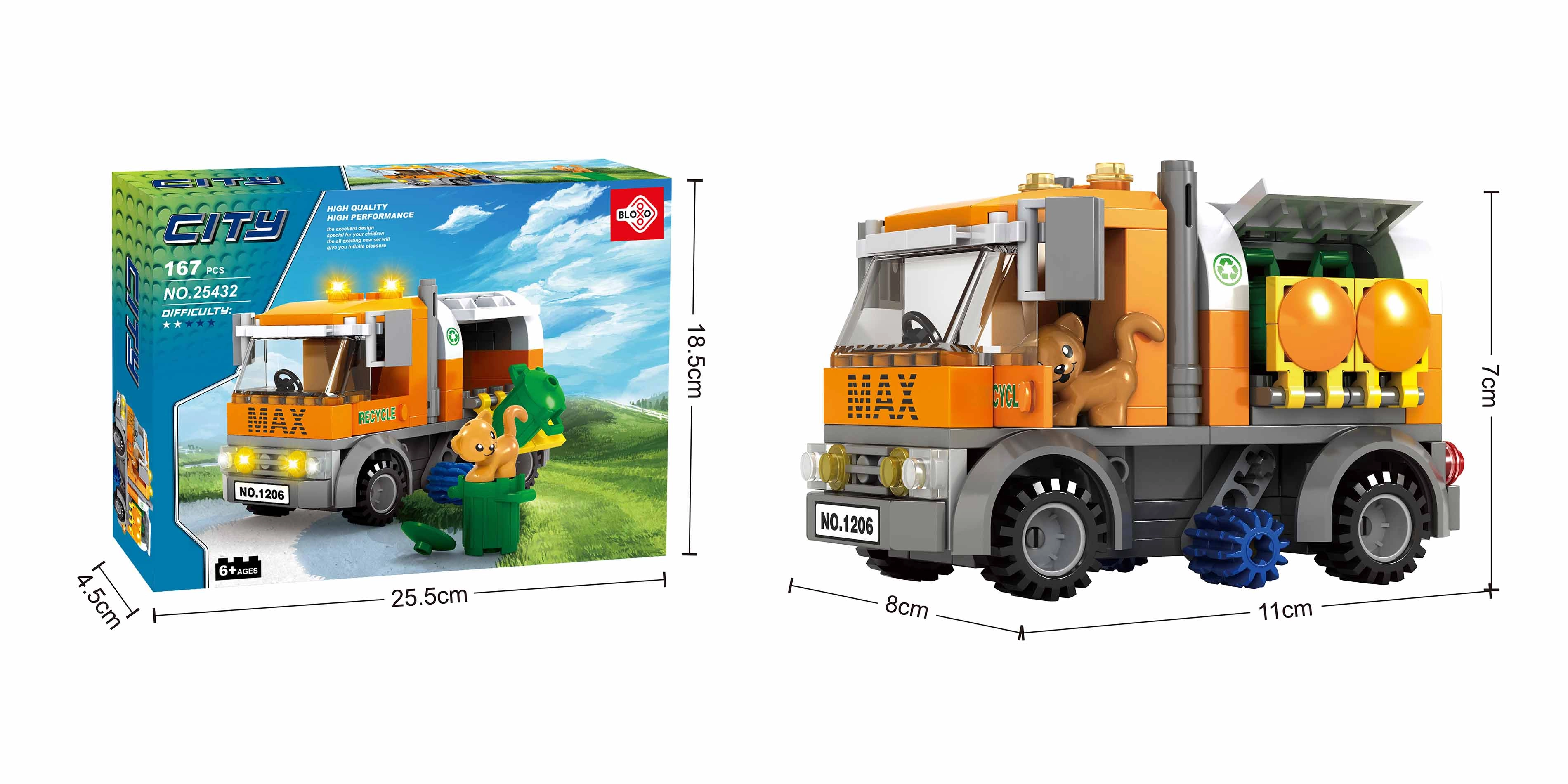 Gradbeni set BLOXO Smetarji prinaša otrokom veliko zabave in praktičnih veščin. Zahvaljujoč 157 natančno izdelanim delom si lahko zgradijo svoje smetarsko vozilo in ga po želji nadgrajujejo. Komplet je kompatibilen z običajno dostopnimi gradbenimi seti, zato ponuja skoraj neomejene možnosti kombiniranja.