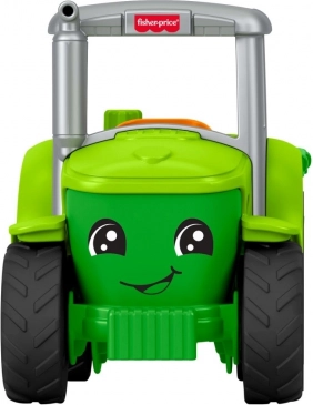Veseli traktor LITTLE PEOPLE je idealen spremljevalec za prve kmečke zgodbe. Dovolj je, da pritisnete voznikov sedež ali gumb na prikolici, in zaslišale se bodo melodije in zvoki, ki otroke spodbujajo k gibanju in raziskovanju. Priloženi sta figurici kmeta in njegovega kužka, ki se udobno namestita v traktor in na prikolico.