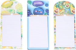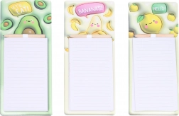 Ohranite red pri nakupih in vsakodnevnih opravilih z magnetnimi beležnicami z veselimi sadnimi motivi. Zahvaljujoč močnemu magnetu jih zlahka pritrdite na hladilnik ali druge kovinske površine, zato bodo vedno pri roki. Priložen je praktičen svinčnik, pripet v zgornjem delu, da lahko pišete kadarkoli in brez iskanja.