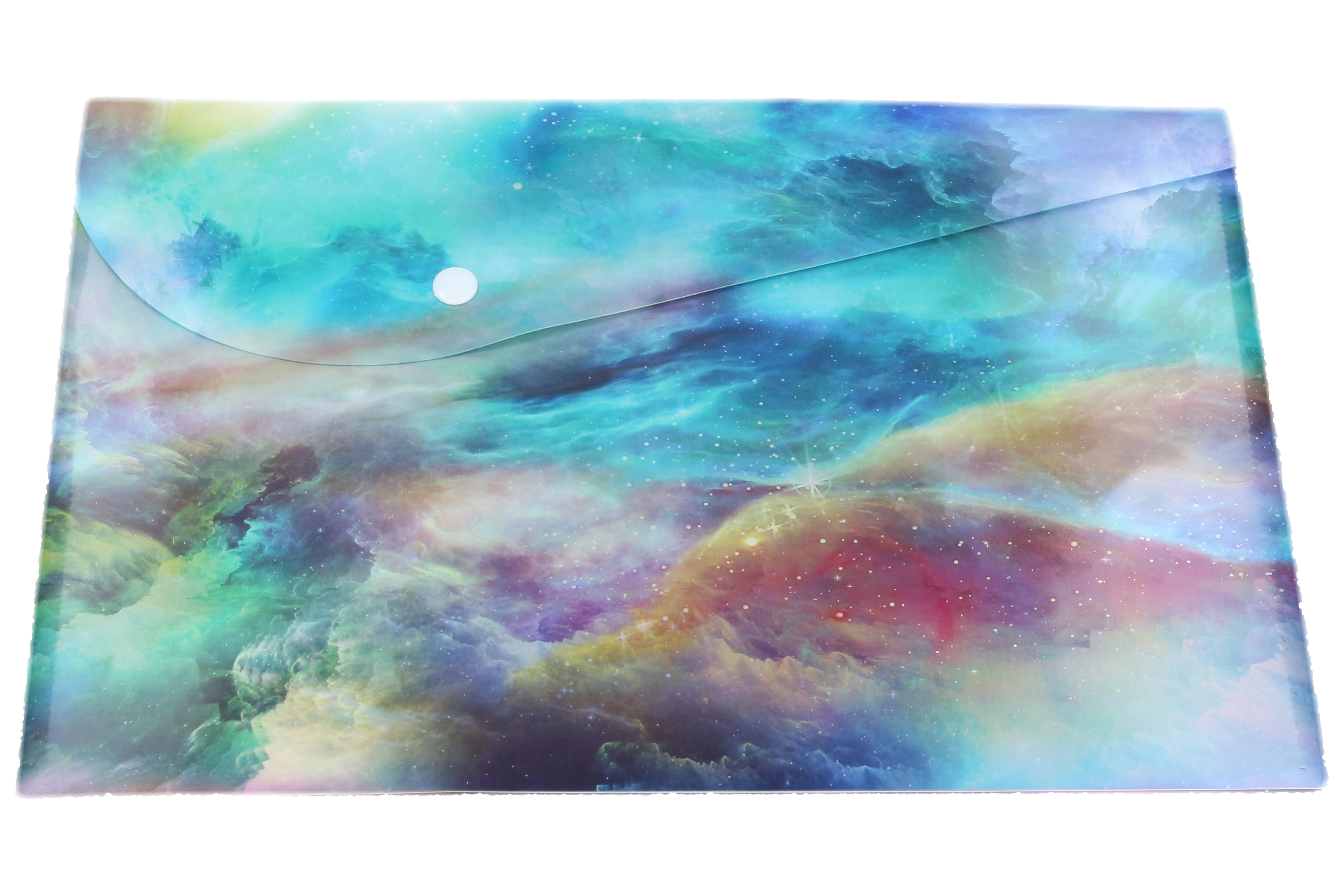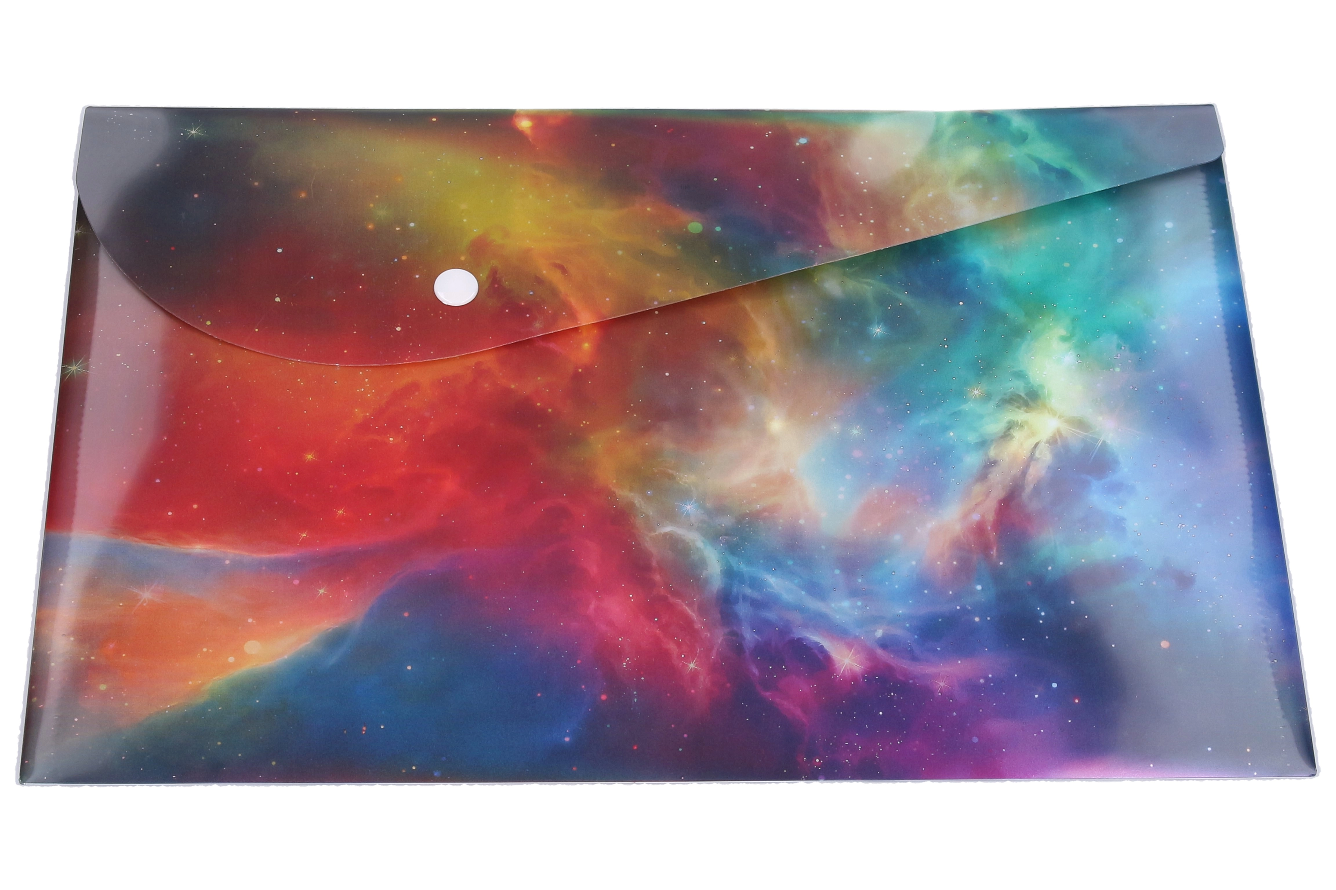 Vesoljski dizajn z motivi galaksij vašim delovnim materialom doda izviren videz. Mapa je idealna za organizacijo dokumentov A4, računov, delovnih listov in šolskih zvezkov. Zaradi polprozornega materiala zlahka vidite, kaj je v notranjosti, hkrati pa je vsebina zaščitena.