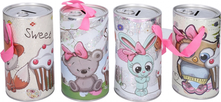 Slogovni hranilnik z živalskim motivom bo priljubljen dodatek otroški sobi in prijetna dekoracija doma. Zahvaljujoč kompaktni velikosti 15 × 8,3 cm se prilega skoraj kamor koli, hkrati pa sprejme dovolj kovancev in bankovcev. Izbirajte med 4 različicami živalic, ki bodo razveselile majhne in velike.