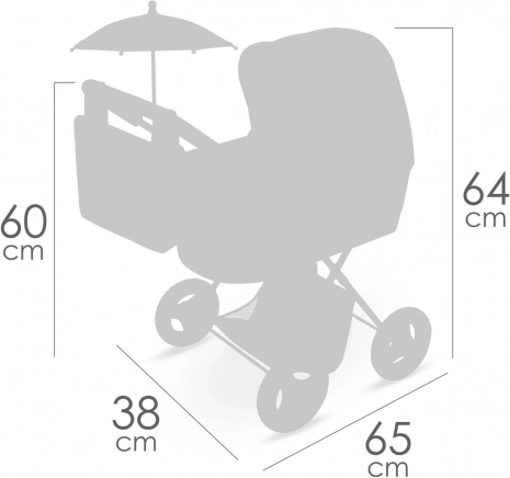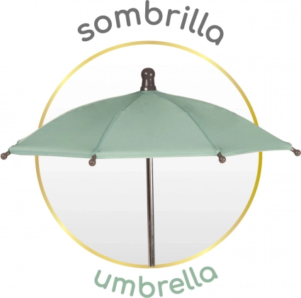 Voziček je odlično opremljen za vsakodnevno igro – od zložljivega senčnika, preko odstranljive torbe z zlatimi zadrgami, do mehke blazine in prostornega koša za drobnarije. Precizna izdelava in španski dizajn poudarjata njegovo kakovost in dolgo življenjsko dobo.