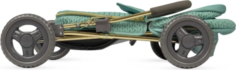 Odkrijte otroški voziček za punčke iz kolekcije Capriccio 2025 z nezamenljivo mentolovo zeleno barvo in elegantnimi zlatimi detajli. Kombinacija imitacije pletenine in gladke tkanine daje vozičku razkošen videz, medtem ko lahek okvir in nižji ročaj zagotavljata udobno upravljanje tudi za manjše otroke.