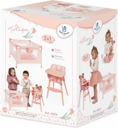 Odkrijte čarobni pohištveni set za punčke DeCuevas Tulipe 2 v 1, ki združuje praktičnost in nežen dizajn. Pastelni lososovi toni s cvetličnim vzorcem in motivom tulipana navdušijo na prvi pogled ter odlično dopolnijo vsako otroško sobo. Zahvaljujoč kakovostnim materialom in premišljenim detajlom je igra udobna, varna in zabavna.