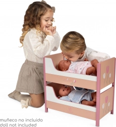Praktične mere, dve ležišči z vzmetnicama ter zelo enostavno rokovanje bodo navdušili otroke in starše. Posteljica je odlično darilo za male skrbnice in se lepo poda v vsako dekliško sobico.