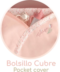 - Snemljiva torbica v obliki tulipana, prevleka košare z zankami in žepkom, žep na strešici s tulipanom in zvončkom, vzmetnica, spodnja shranjevalna košara