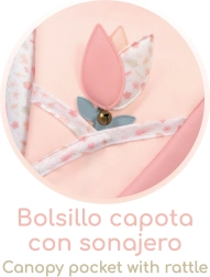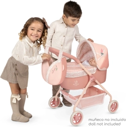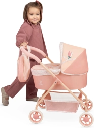 Očarljiv voziček za punčke iz kolekcije Tulipe združuje čudovit španski dizajn in praktičnost za vsakodnevno igro. Nežne lososove pastelne barve s cvetličnim vzorcem ter tematska torbica v obliki tulipana ga naredijo za odlično darilo za otroke od 3 let.