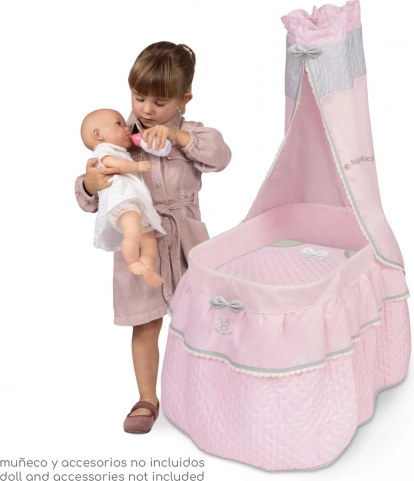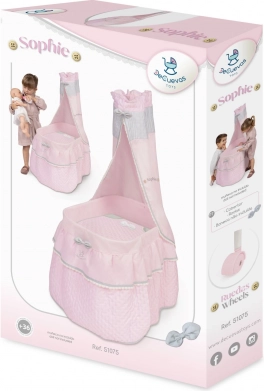 Ta romantična posteljica za punčke v nežno rožnatem videzu s sivimi in belimi detajli iz kolekcije Sophie izstopa s svojo brezčasno podobo in udobnim rokovanjem. Zahvaljujoč vrtljivim kolescem jo otrok zlahka premakne iz sobice v katerikoli prostor in bo imel svojo punčko vedno pri sebi. Kakovostna kombinacija kovine, plastike in tekstila zagotavlja stabilnost in dolgo življenjsko dobo.
