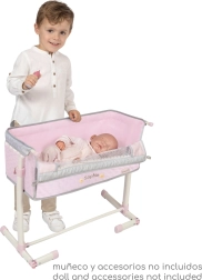 Elegantna novorojenčkova posteljica za punčke iz serije SOPHIE navduši z nežnim dizajnom in praktično funkcijo skupnega spanja. Zahvaljujoč preklopni stranski stranici, nastavljivim nogam in višinsko nastavljivemu ležišču jo enostavno približate otroški postelji. Lahkotna uporaba, kakovostna izdelava ter nežna rožnata izvedba s sivimi in belimi detajli ustvarijo čaroben kotiček za vsako punčko.