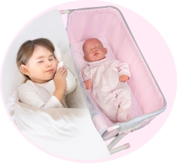 Posteljica za punčke iz kolekcije SOPHIE prinaša realističen občutek nege dojenčka. S funkcijo co-sleeping ima lahko mala mamica svojo punčko ponoči blizu – dovolj je, da spusti stransko stranico in posteljico varno približa postelji. Višinsko nastavljanje v treh nivojih in premične noge zagotavljajo popolno prilagoditev.
