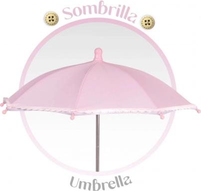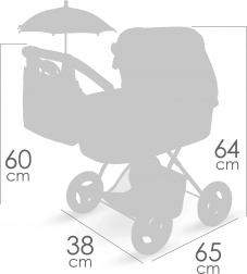 Del kompleta so praktičen senčnik, odstranljiva torba in pokrivalo za košaro z očesi za čvrsto pritrditev. Mehka vzmetnica in prostorna košara nudita punčki udobje, spodnja košara pa ponuja prostor za drobnarije in dodatke.