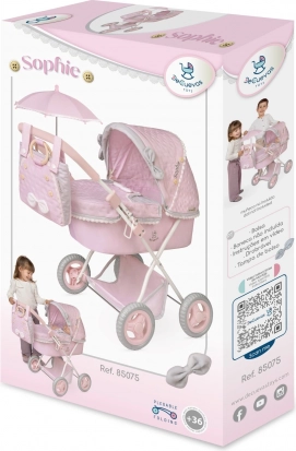 Eleganten voziček za punčke iz kolekcije SOPHIE navdušuje z nežnim dizajnom v rožnatih tonih, zložljivo konstrukcijo in bogato opremo. Ponuja senčnik, odstranljivo torbo, mehko vzmetnico ter shranjevalni prostor v spodnjem delu. Zaradi višine ročaja 60 cm in nizke teže je otrokom enostaven za upravljanje. Idealno za deklice od 3 let dalje.