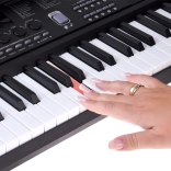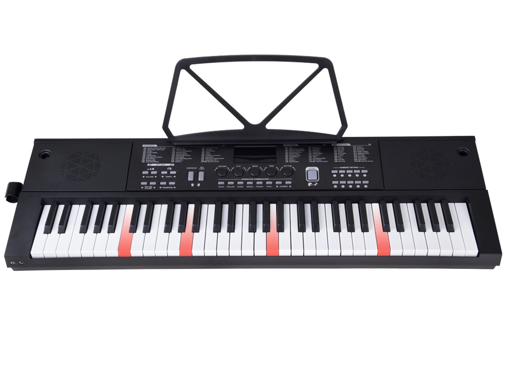 Ta 61-tipkovna elektronska klaviatura združuje bogato opremo z intuitivnim upravljanjem. Osvetljene tipke vodijo vašo igro korak za korakom, medtem ko pregleden LCD-zaslon pospeši izbiro tonov, ritmov in funkcij. Površina tipk z imitacijo lesa prijetno dopolni dotik in prispeva k udobnemu igranju.