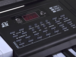 Enostavna orientacija zahvaljujoč LED-zaslonu. Na voljo metronom, transpose, sustain, REC/PLAY, način FOLLOW ter izbire ritma in zvoka.