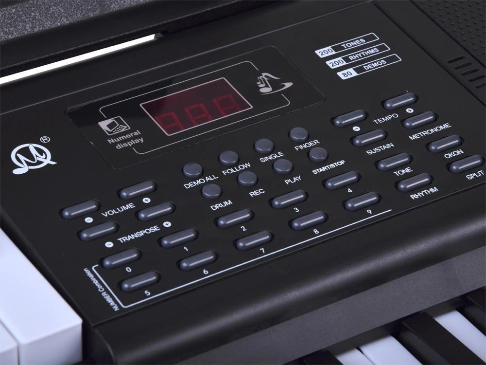Za navdih je na voljo 200 tonov od klavirjev in orgel do godal in pihal, 200 spremljevalnih ritmov (pop, rock, jazz, disco) in 80 demo skladb. Praktične funkcije, kot so metronom, transpose, sustain, REC/PLAY in učni način FOLLOW, podpirajo učenje in zabavo.
