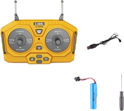 Daljinsko upravljanje 2,4 GHz z 10 kanali omogoča gladko vožnjo naprej/nazaj, zavijanje, dviganje in spuščanje kesona, upravljanje luči in zvočnih učinkov. Vgrajeni Li‑Ion akumulator 7,4 V / 2000 mAh zagotovi do 45 minut delovanja in doseg približno 30 metrov.