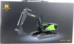 Uživajte v gradbeni zabavi s podrobno izdelanim RC bagrom HUI NA v merilu 1:14. Gosenično podvozje zagotavlja odlično prehodnost terena, kombinacija ABS plastike in kovinskih delov pa nudi odlično vzdržljivost pri intenzivni igri. Zmogljiv 2,4 GHz oddajnik z dosegom do 50 m in 22 kontrolnimi kanali omogoča gladko vožnjo naprej/nazaj, vrtenje kabine, dviganje in spuščanje roke ter natančen nadzor žlice.
