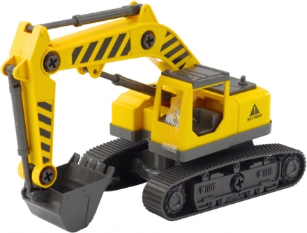 - Vlačilec – polpriklopnik (rumen), gosenični bager, izvijač za montažo/demontažo, baterije (3× AG13), navodila za sestavljanje