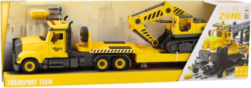 DIY sestavljiv vlačilec s polpriklopnikom in goseničnim bagrom z lučmi in zvoki. Razvija motoriko in logiko, kakovostna plastika, izvijač in baterije priloženi.