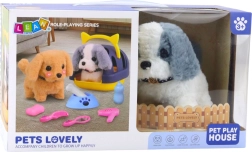 Praktični transporter omogoča, da kužka vzamete na sprehod, obisk ali na počitnice. V paketu najdete tudi bogate dodatke za nego in igro: krtačo, glavnik, skledico s kostjo, stekleničko in sušilnik za lase – vse za učenje empatije, odgovornosti in domišljije.