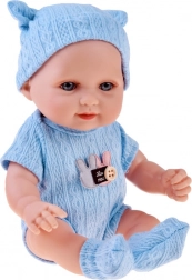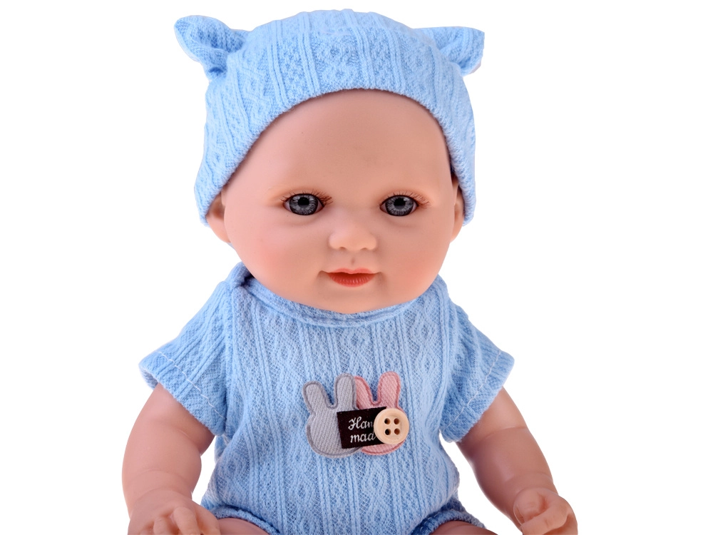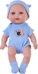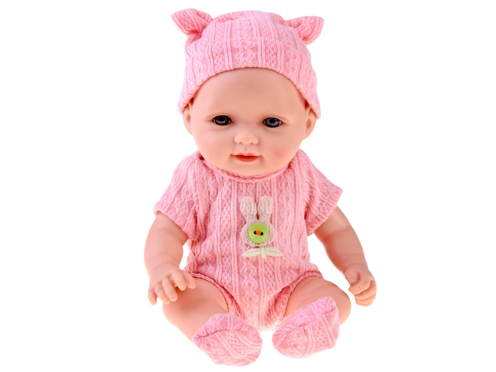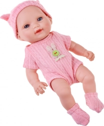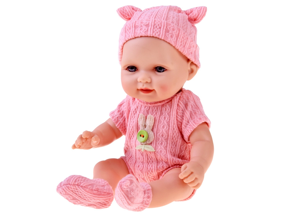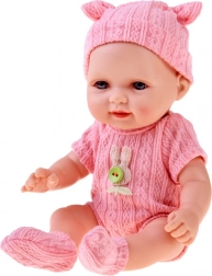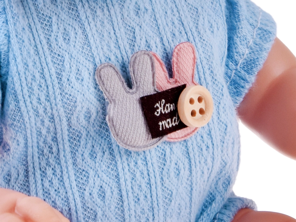 Punčka ima premične ude in glavico, zato jo lahko posadite ali položite k spanju. Obleka obsega mehke pletene pajacke na ježka, ki jih je enostavno sleči in obleči – skupaj s kapico in copatki spodbujajo fino motoriko in samostojnost otroka. Oblačila so na voljo v dveh barvnih različicah: rožnati in svetlo modri.
