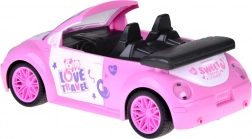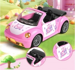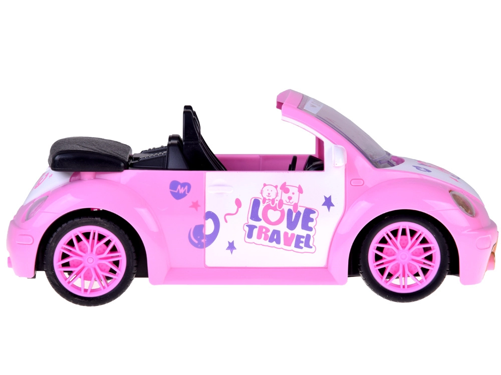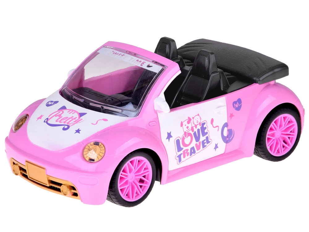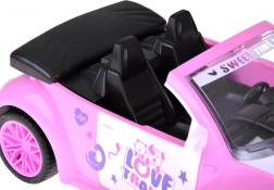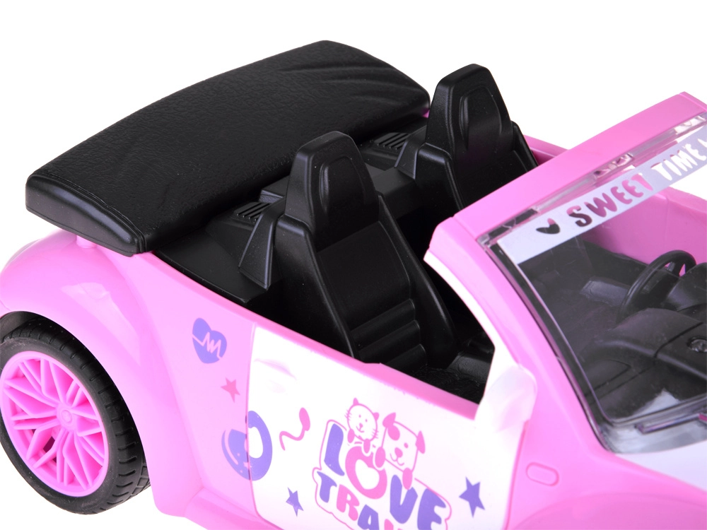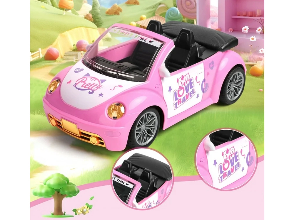 Odprt kabriolet s podrobnim interierjem in dekorativnimi nalepkami odlično dopolni svet punčk in figuric.