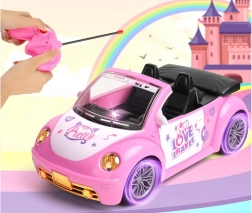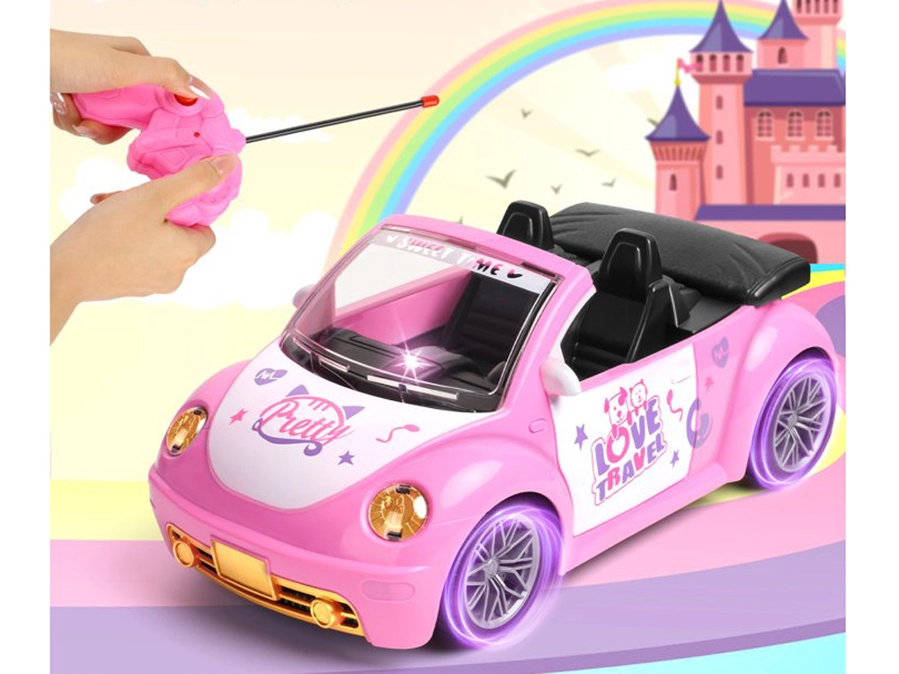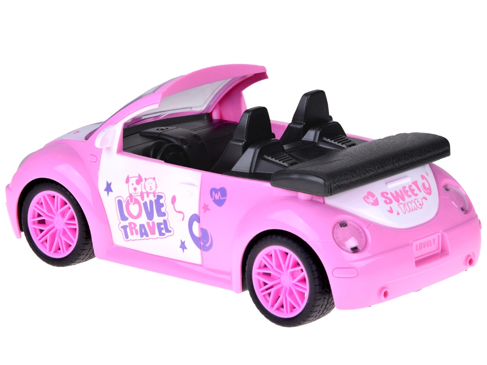 Stilski rožnati avtomobilček kabriolet za punčke združuje privlačen videz z enostavnim upravljanjem. Otroci smer in zavijanje obvladajo z dvema gumboma, pri čemer se sprednji žarometi pri vožnji naprej prižgejo za bolj realističen doživljaj. Idealno za otroško sobo na gladkih površinah.
