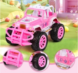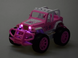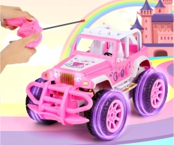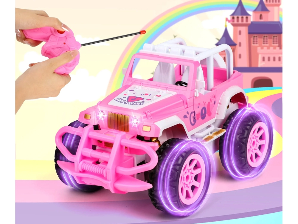 Slogovni rožnati RC terenski avto za otroke združuje privlačen dizajn z dinamično vožnjo. Zahvaljujoč preprostemu daljinskemu upravljalniku se otroci hitro naučijo voziti naprej, nazaj in zavijati, pri tem pa razvijajo fino motoriko in logično razmišljanje. Svetlobni efekti dodajo vožnji realističnost in še več zabave.