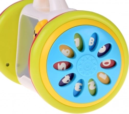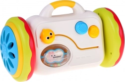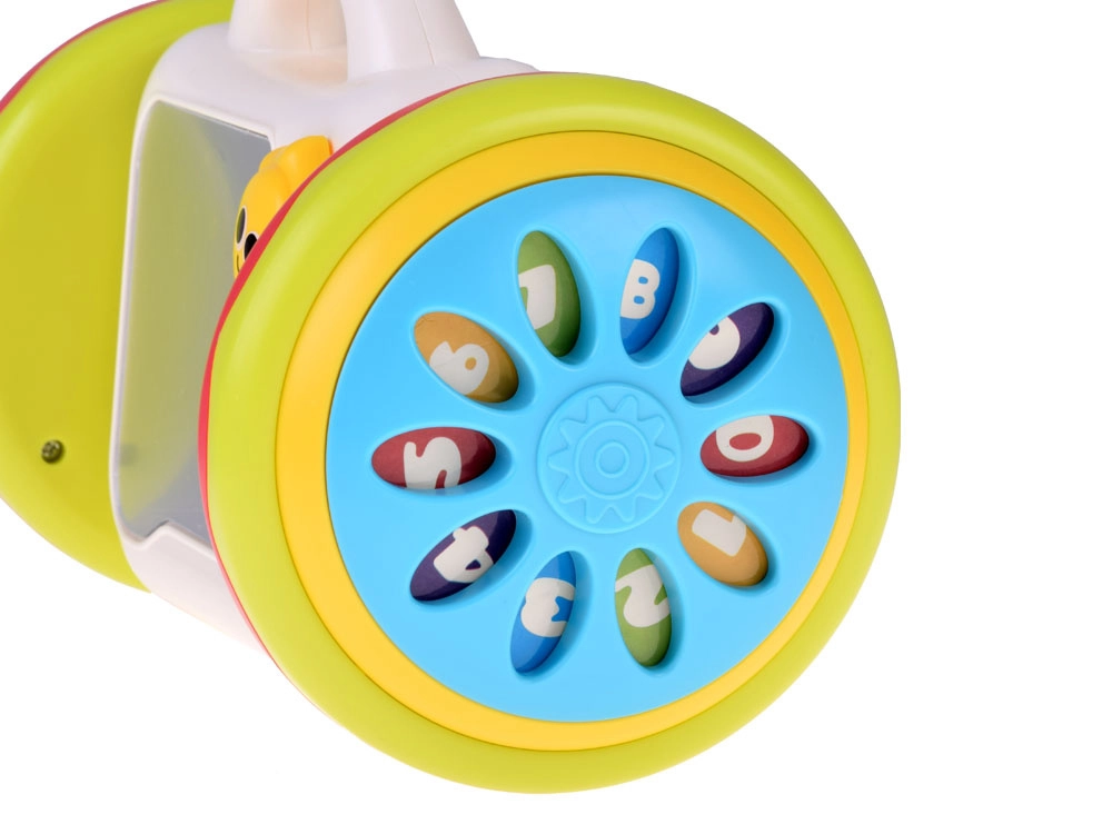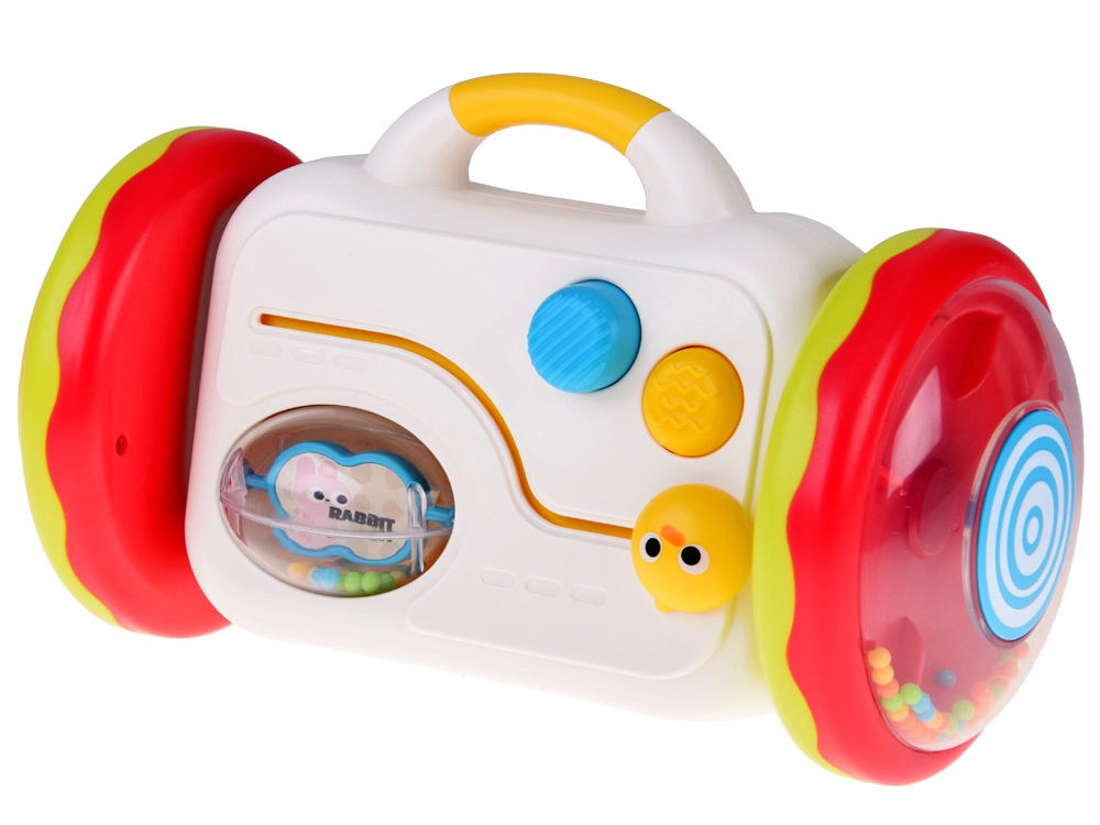 Velika barvita kolesa omogočajo, da se igrača gladko kotali. Otrok jo z veseljem lovi, leze za njo in naravno krepi koordinacijo ter stabilnost.