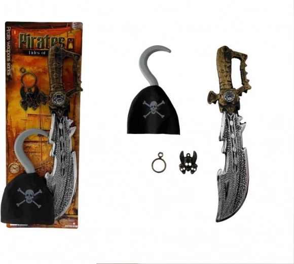 Podajte se na plovbo kot pravi kapitan! Ta piratski komplet vsebuje sablja za dvoboje, kapitanski znak za prestiž in kavelj namesto roke za avtentičen piratski videz. Odlično za male pustolovce, za pusta in tematska praznovanja.