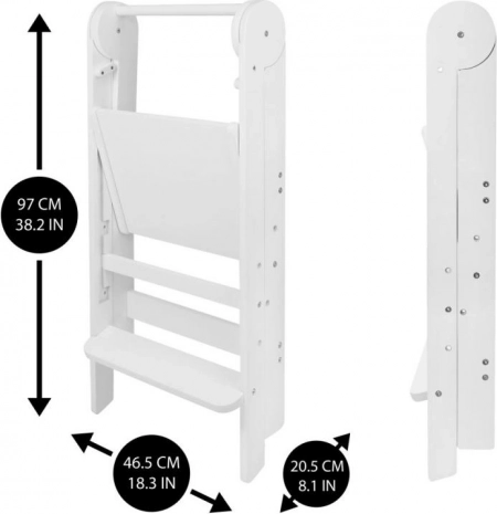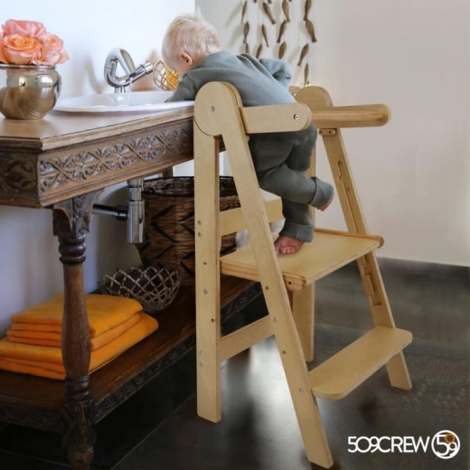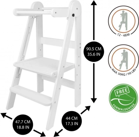 Zložljiv učni stolp LOFTY pomaga otrokom sodelovati pri vsakodnevnih opravilih – od kuhanja do ščetkanja zob. Izdelan je iz kakovostnega vezanega lesa s preverjeno varnostjo brez formaldehida, zato izpolnjuje zahteve sodobnega doma. Zaradi premišljene konstrukcije se zlahka prenaša in shranjuje.