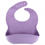 Mehak silikonski slinček s širokim žepkom ujame drobtine in tekočine. Večstopenjsko zapenjanje se prilagodi rastočemu otroku.