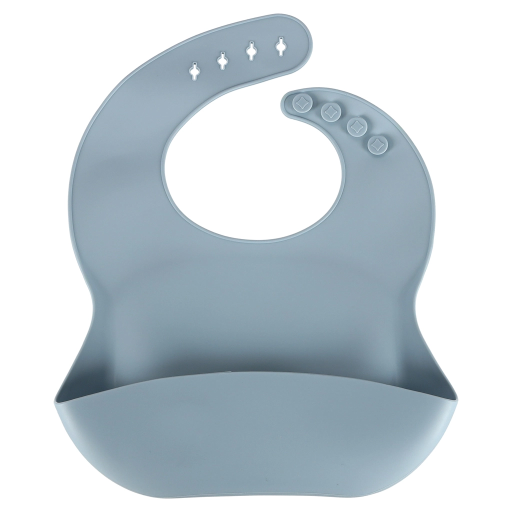 Mehka silikonska slinčica z večstopenjskim zapenjanjem raste z otrokom. Globok žep ujame drobtine in tekočine, zato oblačila ostanejo čista, pospravljanje pa je hitro.