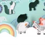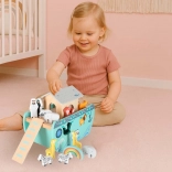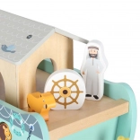 Živalice se vstavljajo v natančno oblikovane odprtine na boku ladje. Otroci tako na naraven in zabaven način vadijo prepoznavanje oblik, potrpežljivost in fino motoriko.