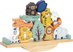 Zaradi robustnih lesenih delov z gladko površino je igra varna in prijetna na dotik. Zabavne ilustracije safari živalic in igrive barve spodbujajo domišljijo in naravno radovednost otrok. Odlično za skupne trenutke s starši ali kot samostojna aktivnost.