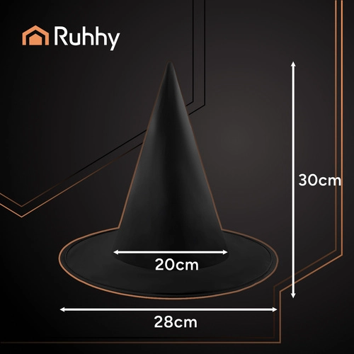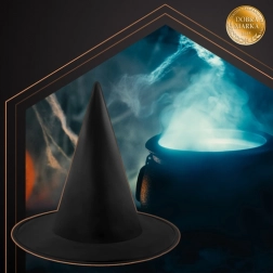 Dodajte svojemu kostumu čarovnice, vile ali maga pravi šarm. Ta črn klobuk z ostro konico in širokim krajcem poudari lik in pritegne pozornost na vsaki zabavi ob noči čarovnic, na pustovanju, v šolski predstavi ali pri fotografiranju.