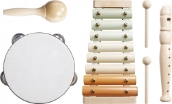 Tamburin, maraka, flavta in ksilofon s paličicami bodo otrokom ponudili širok spekter zvokov in možnosti igre.