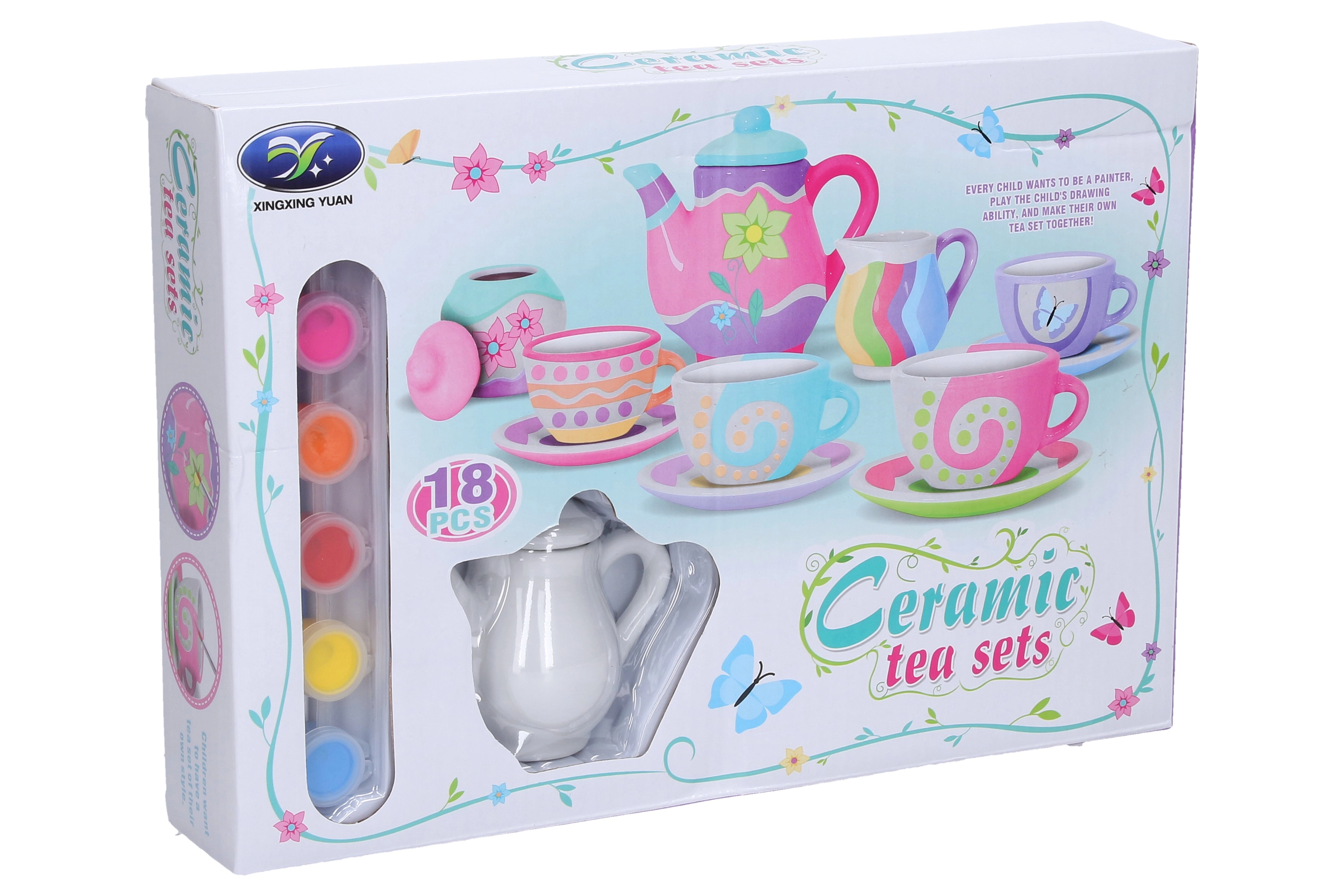 Ustvarite si svoj poslikan čajni servis in spremenite prosti čas v ustvarjalno doživetje. Ta set je odličen za otroke in odrasle, ki imajo radi slikanje in dekoriranje. Zahvaljujoč popolni opremi lahko začnete ustvarjati takoj po razpakiranju.