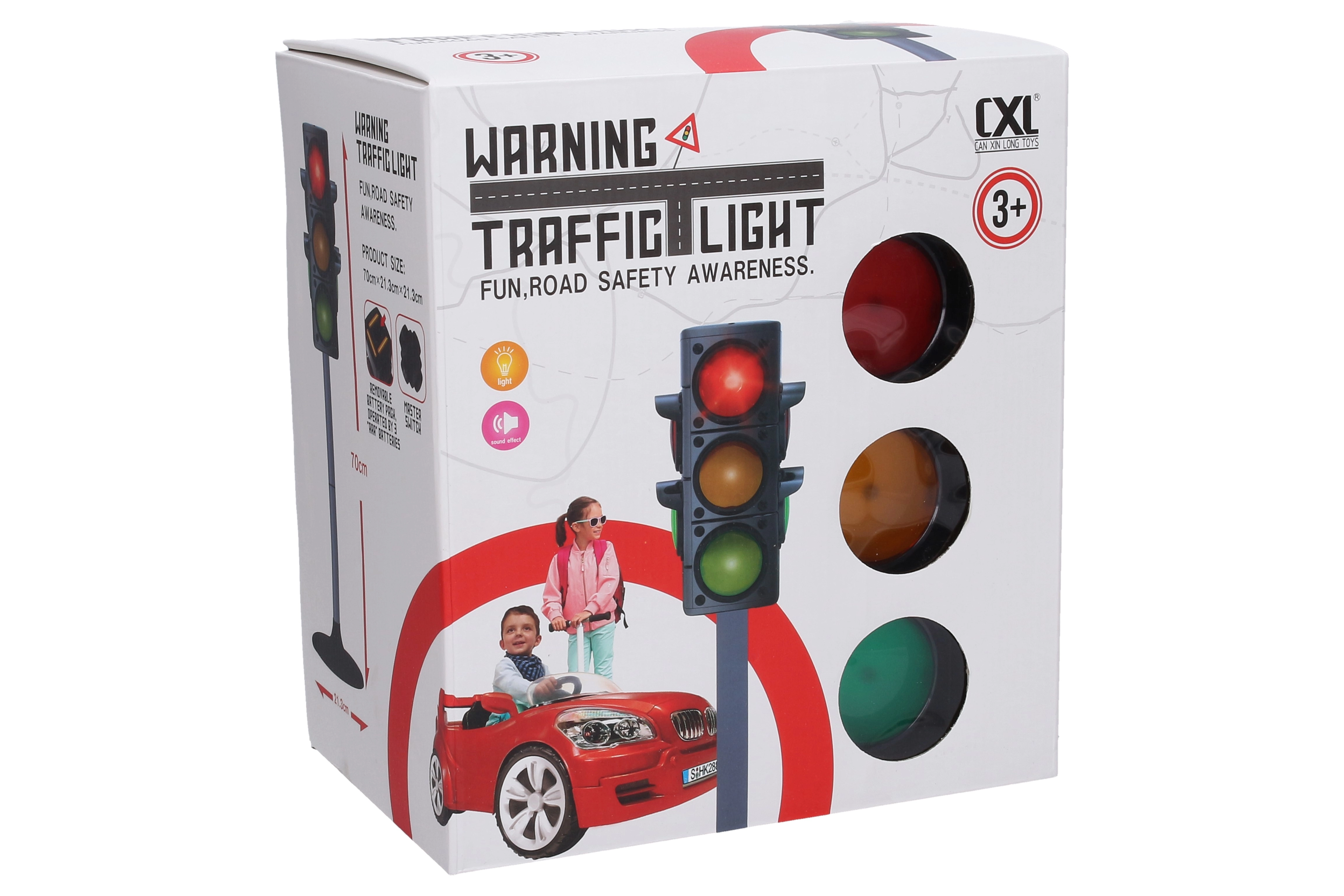 Ustvarite si doma svoje prometno igrišče. Ta otroški semafor z realističnimi funkcijami pomaga na igriv način učiti prometne predpise. Zahvaljujoč svetlobnemu načinu in načinu z lučmi in zvokom je igra maksimalno pristna in privlačna. Priročno stikalo in gumb za opozorilne luči omogočata enostavno upravljanje tudi mlajšim otrokom.