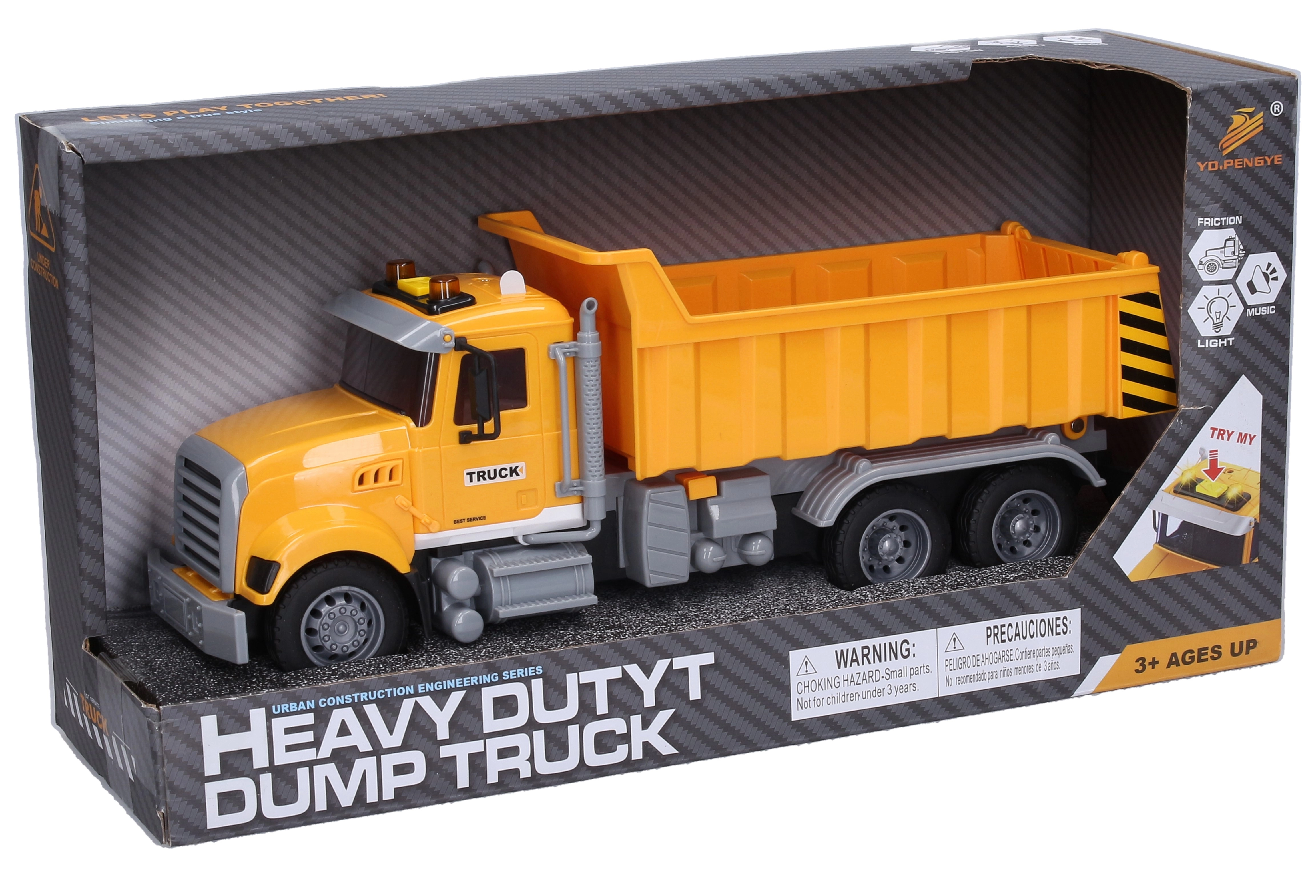 Praktična nagibna kesonska karoserija se sprosti z varnostnim gumbom na bočni strani pod nakladalno površino, zadnji del pa je mogoče odpreti za lahko raztovarjanje tovora. Baterije 3x AG13 so priložene, zato lahko otroci začnejo z igro takoj.