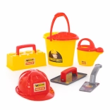 Ta zabaven konstruktorski komplet znamke Wader je namenjen otrokom, ki želijo raziskovati svet konstrukcij. Del kompleta je pester rumen vedro, rdeča čelada, zalivalka in drugi orodji, ki zagotavljajo ure kreativnosti in zabave.