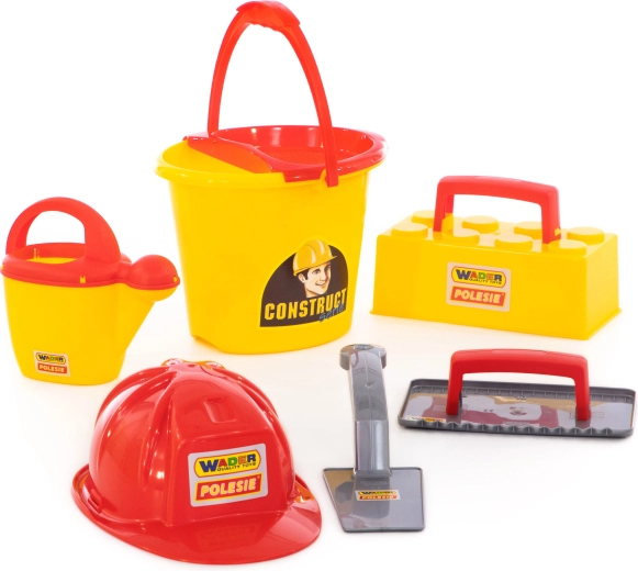 Ta zidarska gradbena garnitura Wader ConsTruct spremeni vsak peskovnik v malo gradbišče. Otroci lahko zajemajo, prenašajo, oblikujejo in »zidajo« svoje stvaritve s pomočjo modela za opeke, medtem ko čelada podpira pristno igranje vlog. Lahka in vzdržljiva plastika z gladkimi robovi je idealna za varno igro na prostem in ob vodi.