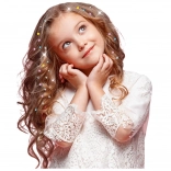 Kreativni set za male modne navdušenke omogoča hitro in enostavno okraševanje las, nohtov, kože in predmetov s sijočimi kamenčki. Zahvaljujoč praktičnemu pripomočku je dovolj, da vstavite trak s kristalčki, ga prislonite na izbrano mesto in z enim pritiskom ustvarite takojšen bleščeč učinek. V pakiranju je 80 kristalčkov različnih oblik za neskončne kombinacije.