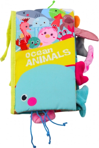 Ta varna in mehka tekstilna knjižica prinaša otrokom od prvih mesecev življenja barvite ilustracije morskih živali – na primer kita, tjulnja ali meduze. Izbočeni »repki« iz različnih materialov vabijo k dotiku in zabavnemu spoznavanju novih struktur, kar naravno spodbuja tip in radovednost.